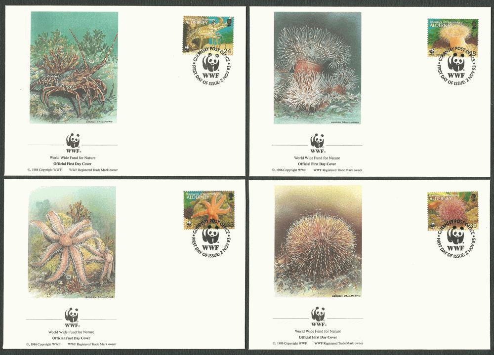 ALDERNEY 1993 WWF MARINE LIFE FDC 4v