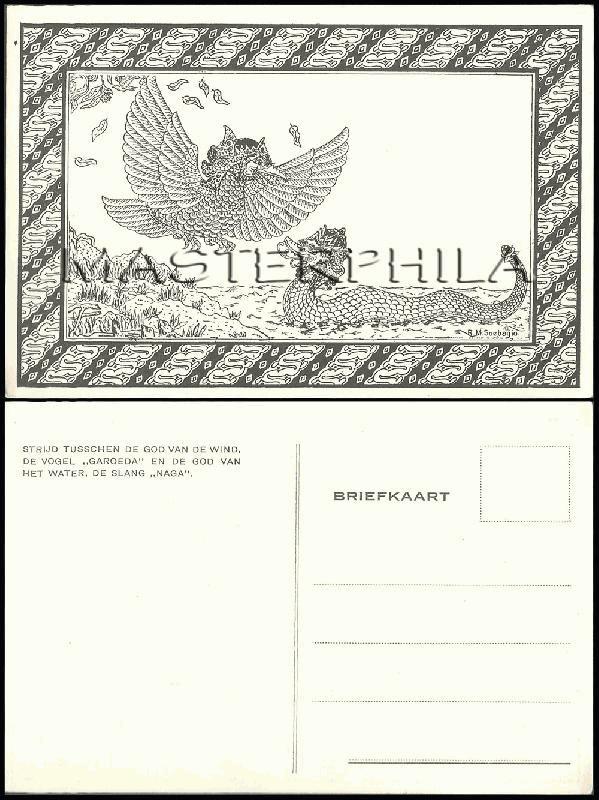 JAVA Ca.1935. Strijd Tusschen de god van de Wind, de Vogel "GAROEDA" en de god van het Water, de Slang "NAGA". Publ. Anonimous