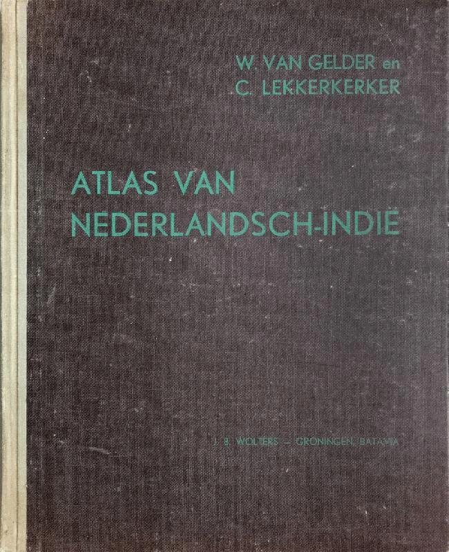 Atlas van Nederlandsch Indie. J.B. Wolters 1937. 30,5x24,5cm, half linnen 16p index and 12 col. maps.