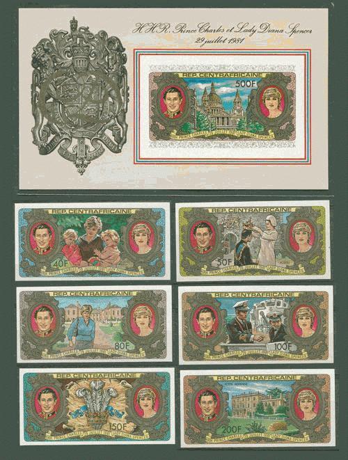 CENTRAL AFRICAN REPUBLIC 1981 ROYAL WEDING DIANA 6v
