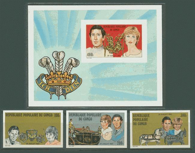CONGO 1981 ROYAL WEDDING DIANA 3v IMPERF