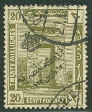 EGYPT 1922 OLIVE 20 MILLS OVPT USED