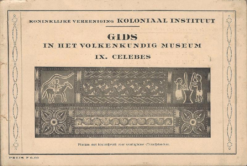 GIDS IN HET VOLKENKUNDIG MUSEUM Vol. IX. CELEBES. Ca.1930. Planken met houtsnijwerk voor woningbow (Toradjalanden). Softcover Teks & Illustr.