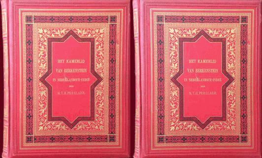 Het Kamerlid van Berkenstein in Nederlandsch - Indie. Leiden 1888 - 1889, 4 parts in 2 volumes, 202 & 185pp, 25 x 33cm, complete 106 Chromolithogr plates after J.C. Rappard, inf gilt and blindst cl. Folio.