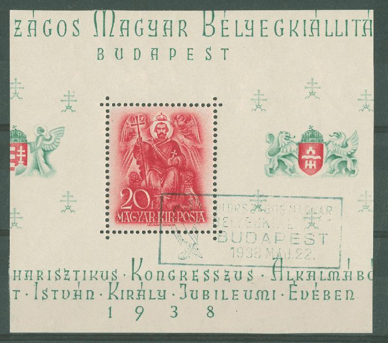 HUNGARY 1938 STAMP CENTENARY MS USED