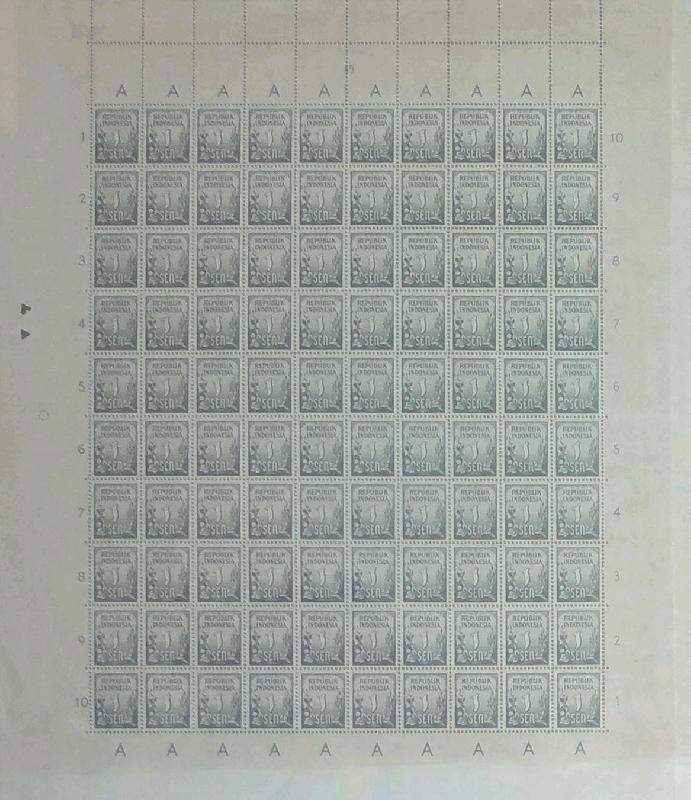 INDONESIA 1951 PADI KAPAS 1SEN FULLSHEET 100x SHORTSET