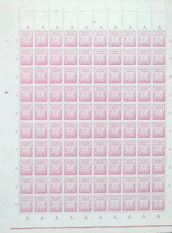 INDONESIA 1951 PADI KAPAS 5SEN FULLSHEET 100x SHORTSET