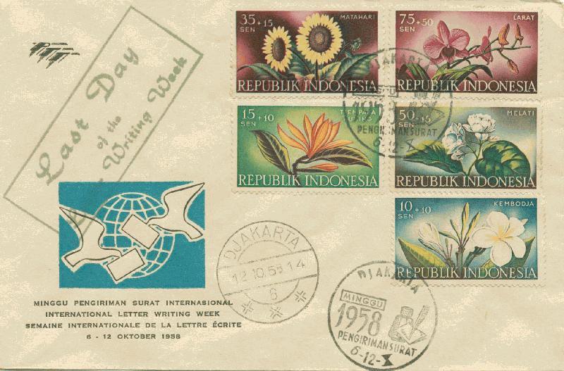 INDONESIA 1958 PEKAN SURAT INTERNASIONAL SP CAP SPESIAL LAST DAY COVER
