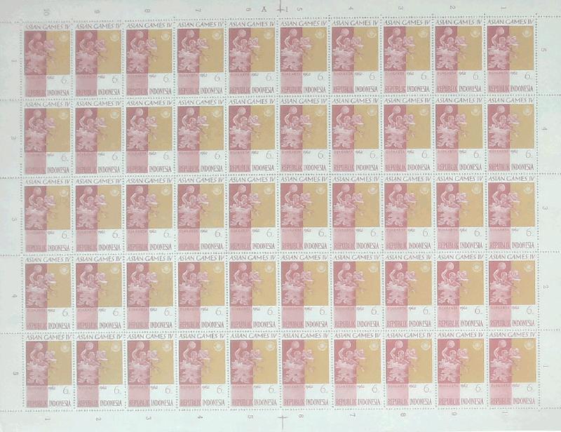 INDONESIA 1962 ASIAN GAMES KE-4 Rp.6,- FULLSHEET 50x SHORTSET