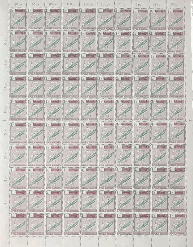 INDONESIA 1967 ALAT MUSIK Rp.3,- FULLSHEET 100x SHORTSET