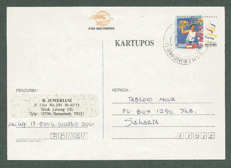 INDONESIA 1997 KARTUPOS (PS) SEA GAMES USED "SAMARINDA"