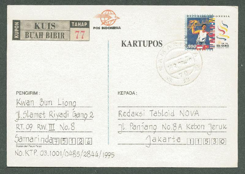 INDONESIA 1997 KARTUPOS (PS) SEA GAMES USED "SAMARINDA"