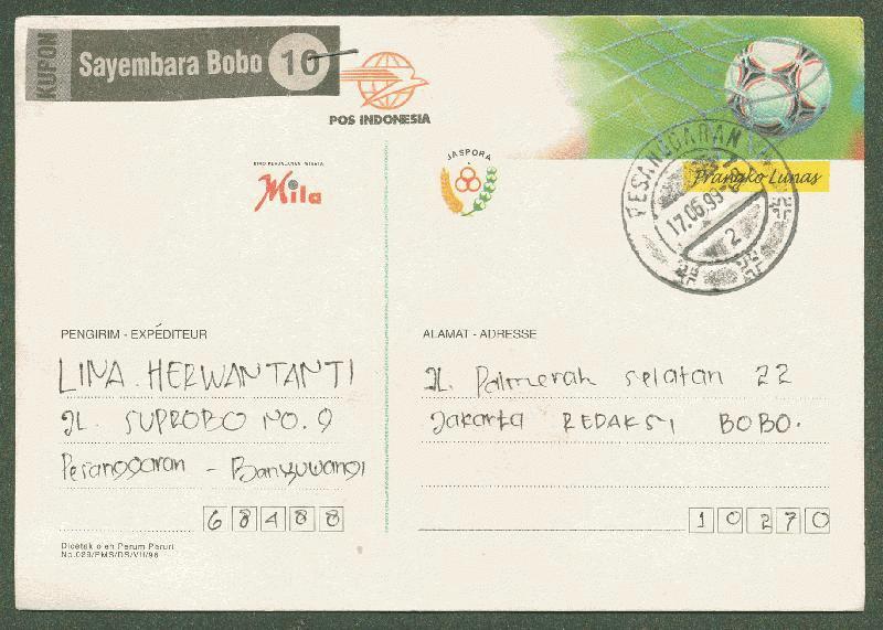 INDONESIA 1997 KARTUPOS (PS) SEPAK BOLA USED PMK "PESANGGRAAN"