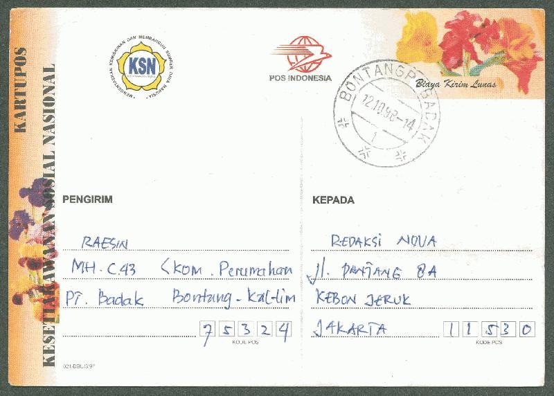 INDONESIA 1998 KARTUPOS (PS) KSN BUNGA USED "BONTANG"