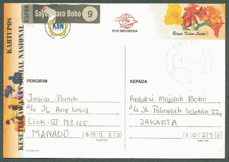 INDONESIA 1998 KARTUPOS (PS) KSN BUNGA USED "TATELU"