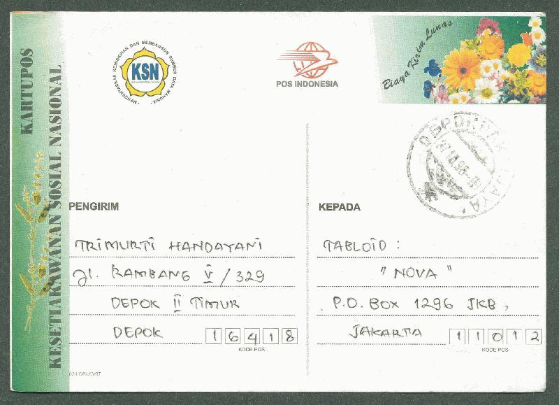 INDONESIA 1998 KARTUPOS (PS) KSN BUNGA USED "DEPOK BAKTI JAYA"
