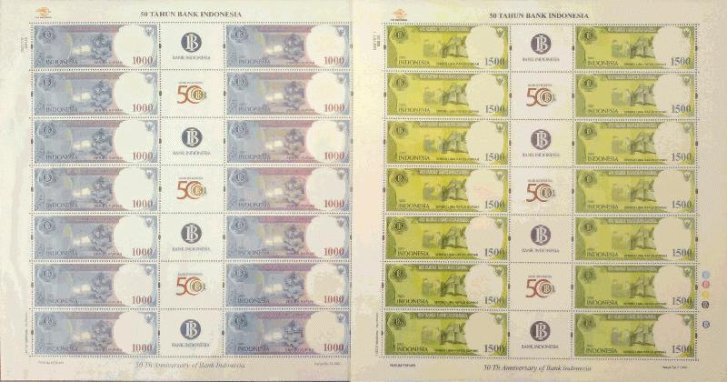 INDONESIA 2003 50 TAHUN BANK INDONESIA FULLSHEET Mint 2v @14