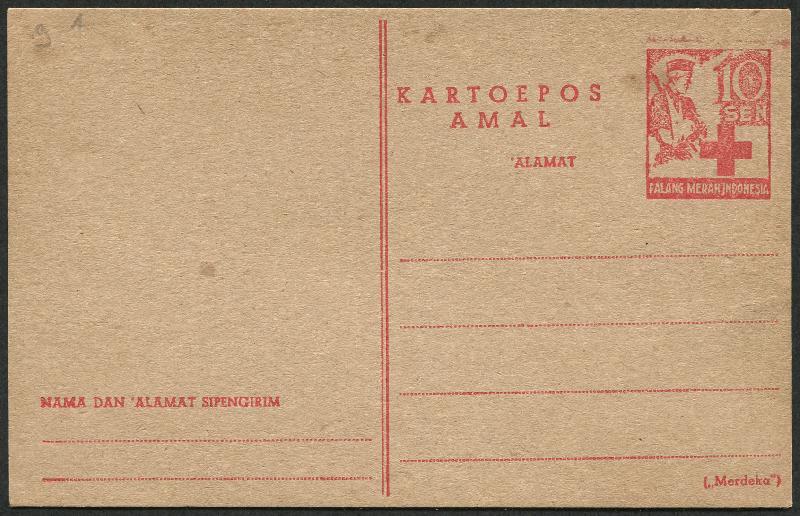 Postcard 'Palang Merah Prajurit' No Words "Berlakoe s/d 1947" and Bar, Not listed in the Catalogue. Unused. VERY RARE ITEM