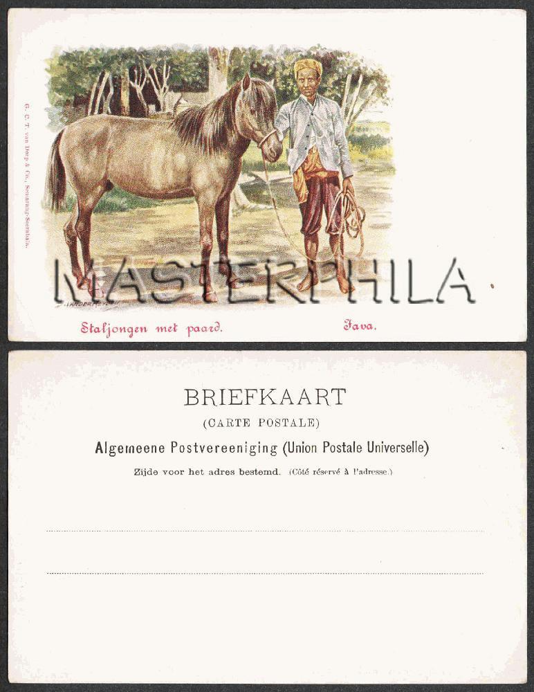 JAVA Ca.1902 STALJONGEN MET PAARD - COLORED LITHOGRAPH