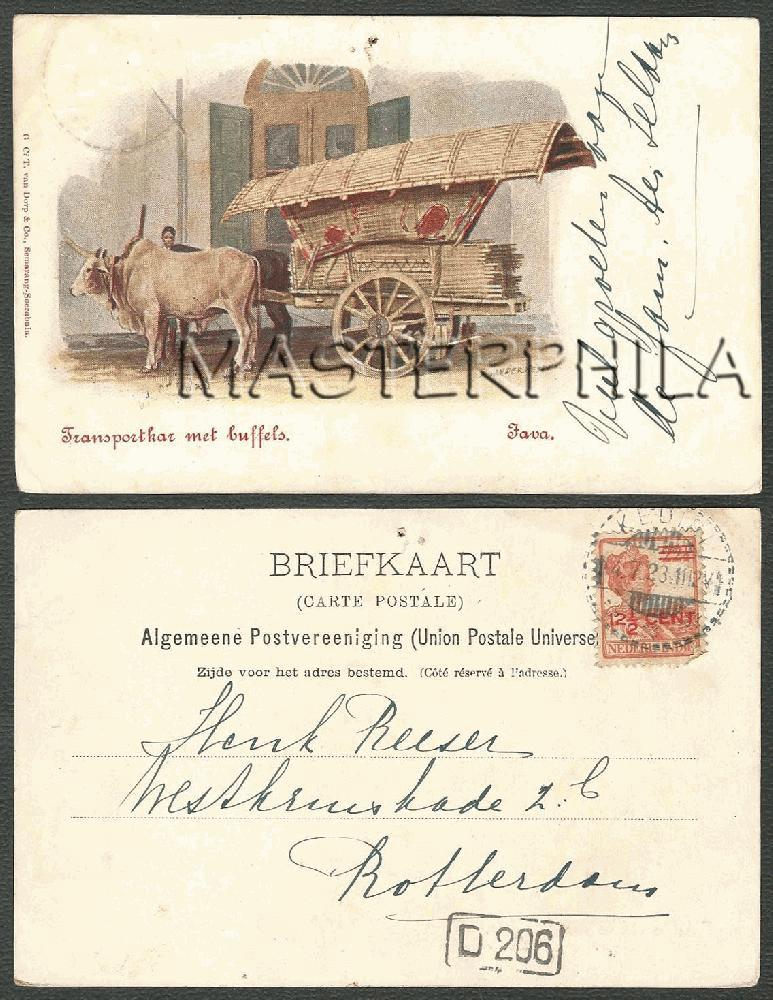 JAVA Ca.1902 TRANSPORTKAR MET BUFFELS - COLOR LITHOCARD USED 1923