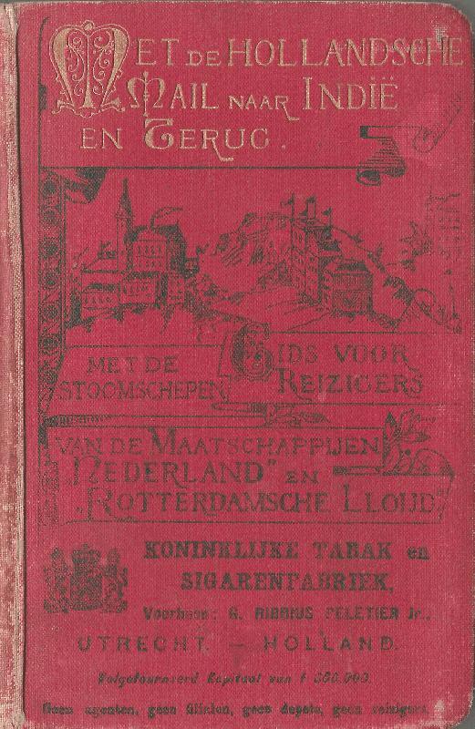 MET DE HOLLANDSCHE MAIL NAAR INDIE EN GERUG. 1863. Met De Stoomschepen Gids voor Reizigers van De Maatschappijen Nederland en Rotterdamsche Lloijd. Koninklijke Tabak en Sigarenfabriek.