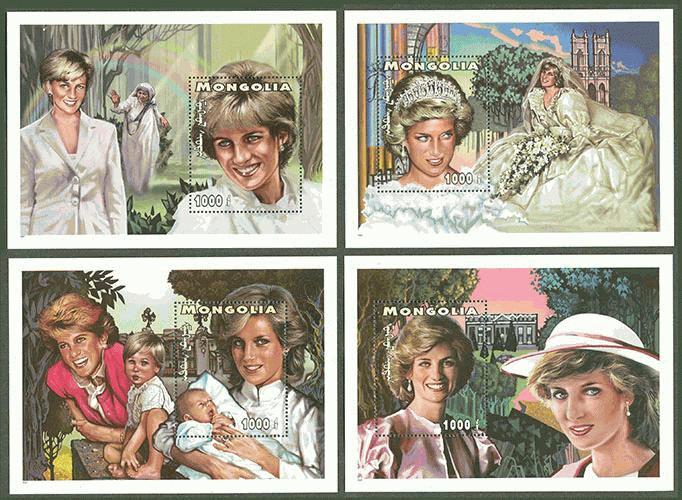 MONGOLIA 1997 DIANA COMMEMORATIONS 4 MS