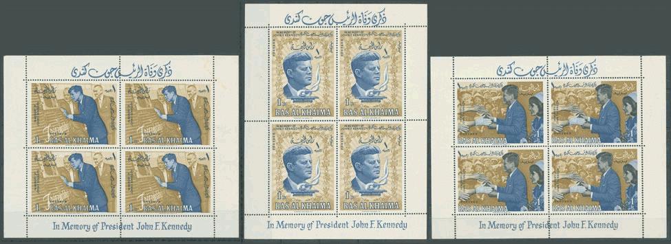 RAS AL KHAIMA 1965 JOHN F KENNEDY 3SHEETS OF B-4