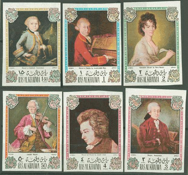RAS AL KHAIMA 1972 MOZART POTRAITS 6V IMPERF