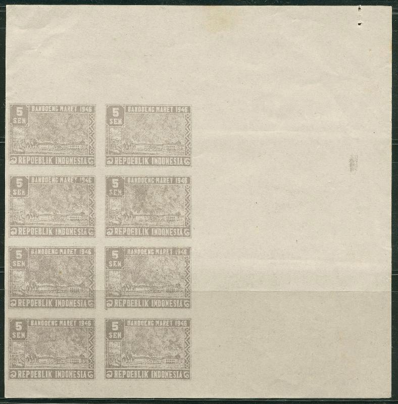 REVOLUSI JAVA 1946 IMPERF PROOF 5 SEN COKLAT CORNER B-8