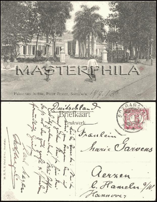 Used, from / pmk "Soerabaja 15.7.13" sent to Hannover - Germany with 5c Numeral stamp