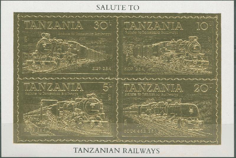 TANZANIA 1985 KERETA API MS GOLD PRINTING