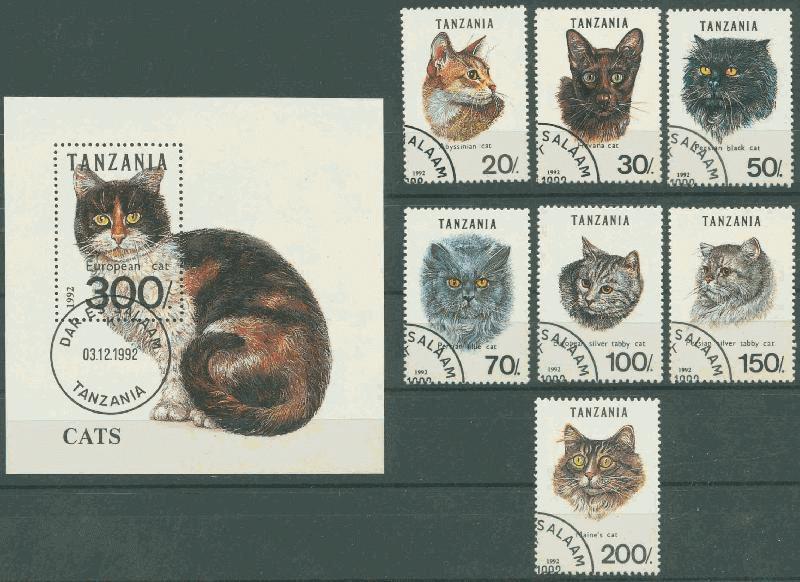 TANZANIA 1992 KUCING 7v + MS