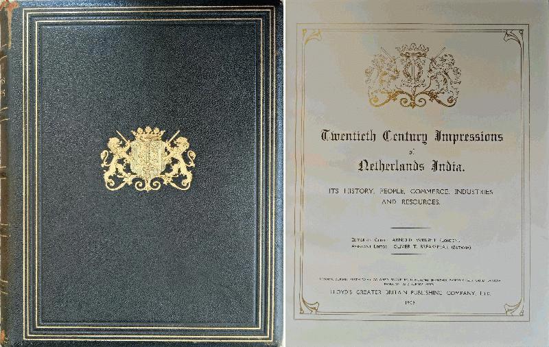 Twentieth Century Impressions of Netherlands India. Its history, people, commerce, industries and Resources. Leoyd's Greater Britain Publisting Company, Ltd 1909. Leather Cover. 1st edition, 606pp with numerous photographs.