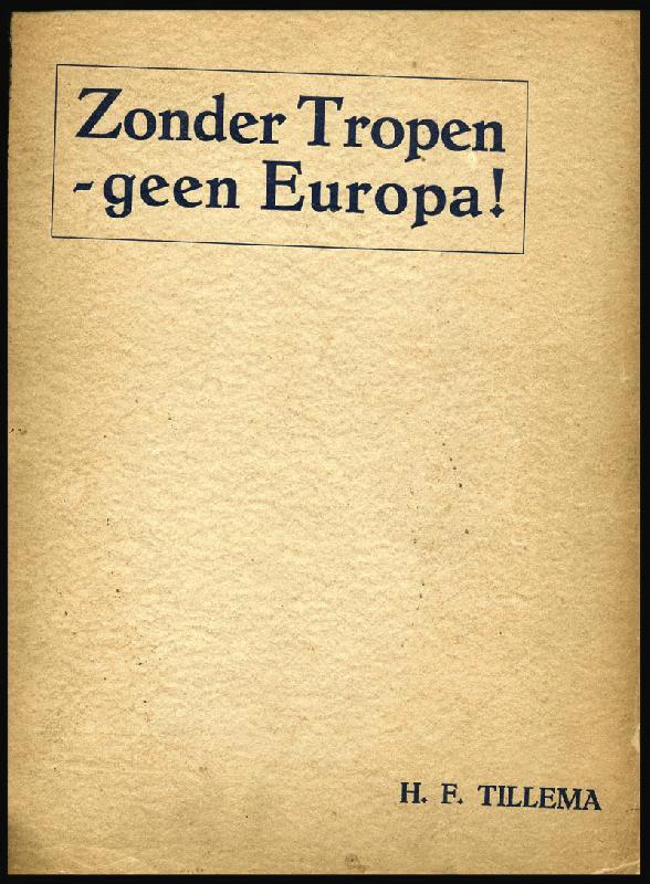 Zonder Tropen-geen Europa, 264pp Softcover. H.F.Tillema 1926. Many photos from Sumatra, Java, Soenda Eilanden-Molukken, Celebes, Papoea etc. Good